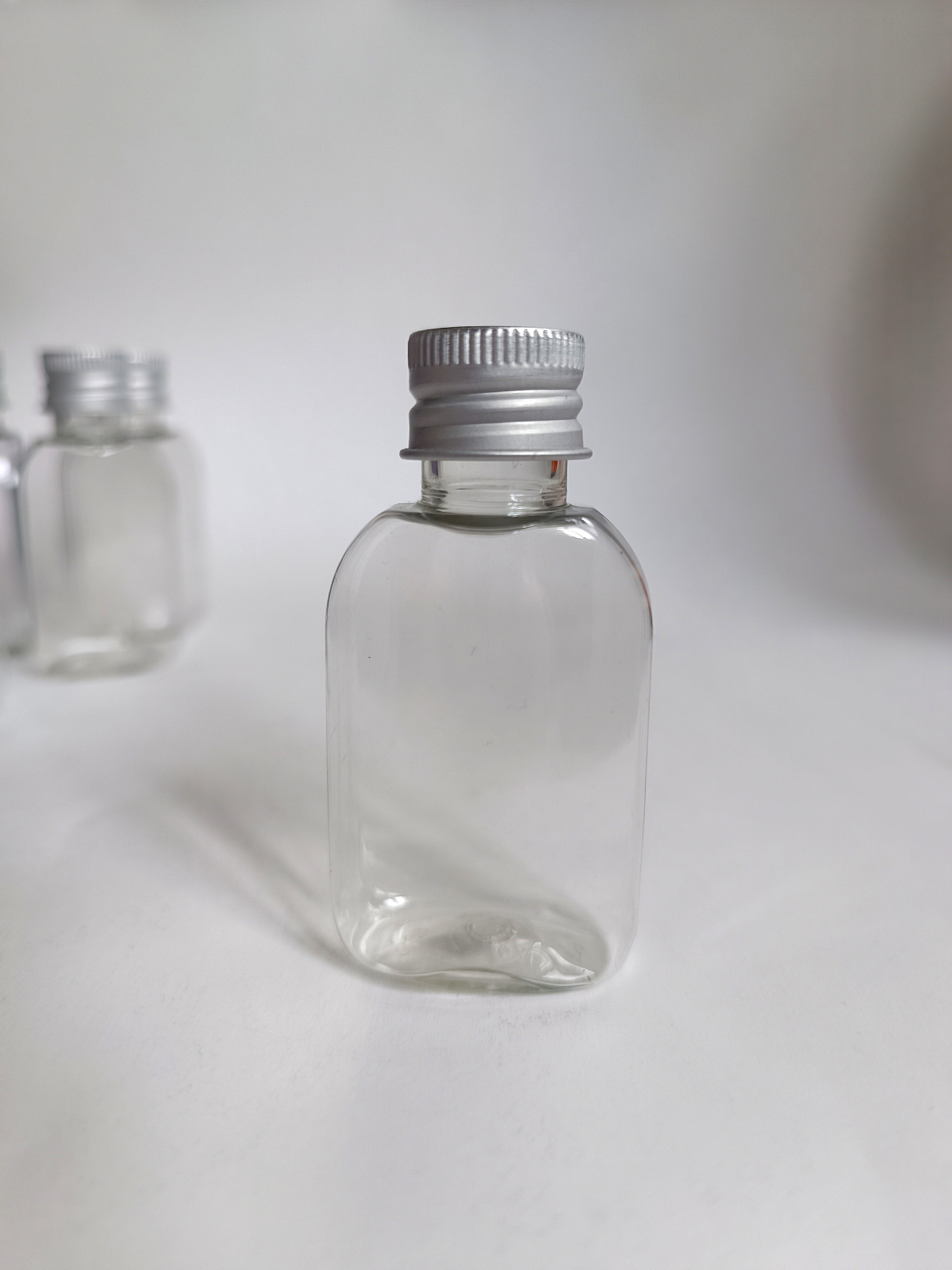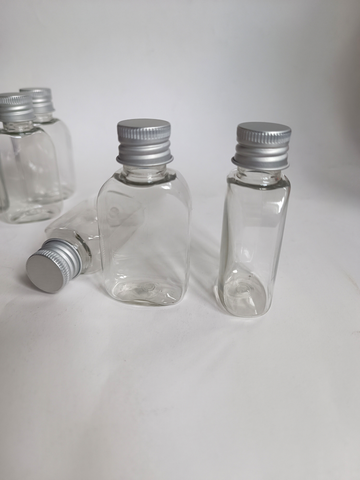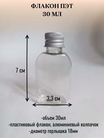 Флакон ПЭТ(безопасный и распространенный пластик для тары) прозрачный плоский с алюминиевым колпачком. Пластиковые флаконы отлично подходят для хранения жидких косметических продуктов. Удобный и компактый размер, можно брать с собой в дорогу. Также можно использовать под другие жидкости. Металлический колпачок плотно навинчивается. Объем флакона 30мл (до горлышка около 35мл). В наборе 10штук.